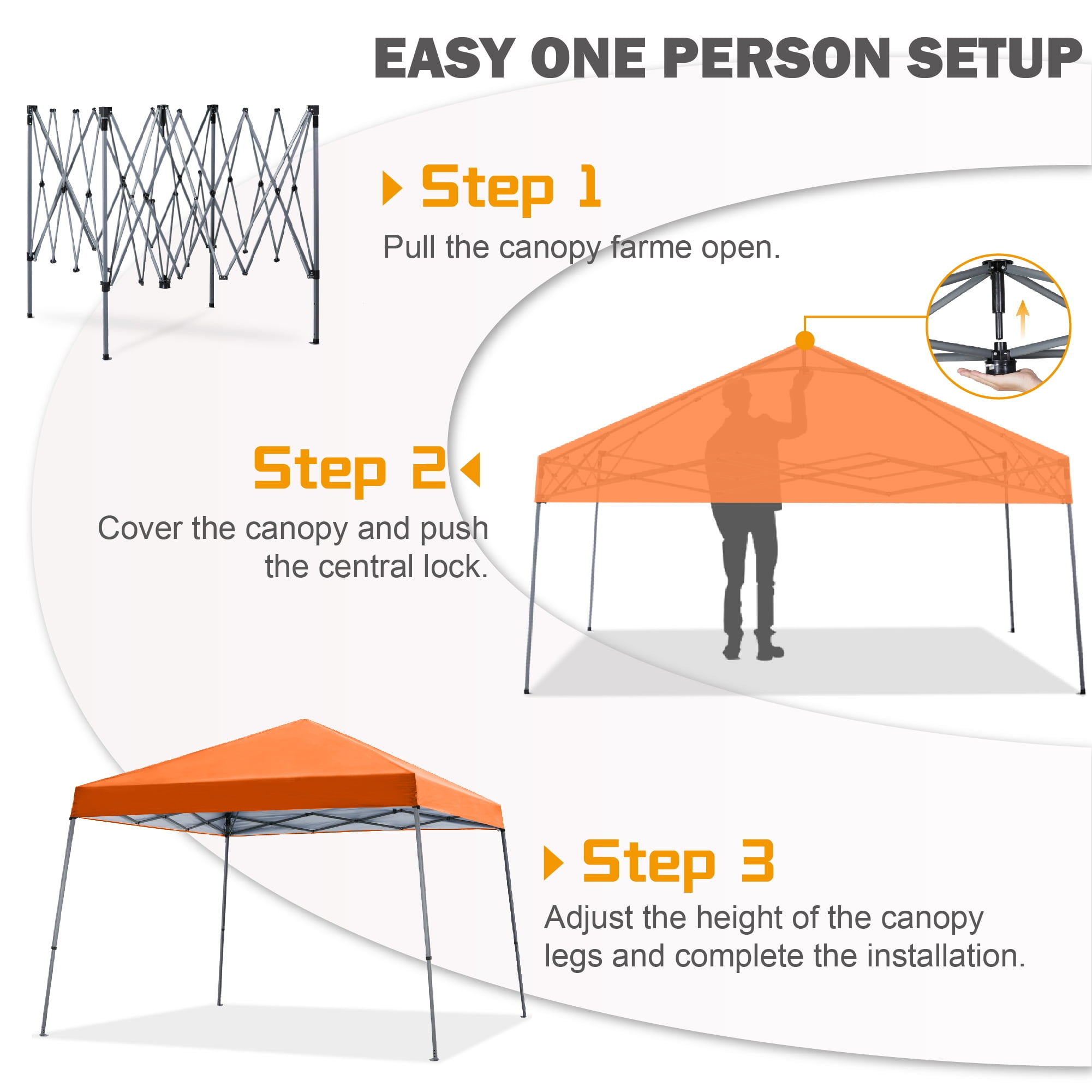 Abccanopy 10 Ft X 10 Ft Outdoor Pop Up Canopy Tent With Slant Leg Orange Walmart Com